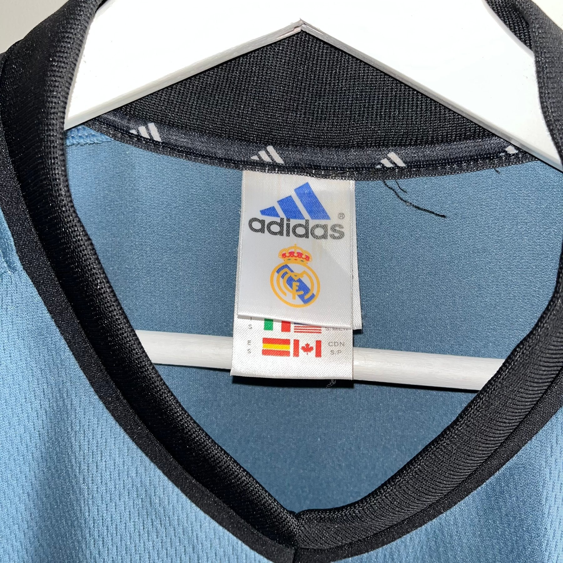 قميص زيدان شعار الدوري الإسباني لكرة القدم الموسم الأول لزيدان في ريال مدريد قميص مُعادترميمه و أصلي وحقيقي. لا يوجد تقليد أو إعادة تصنيع.
